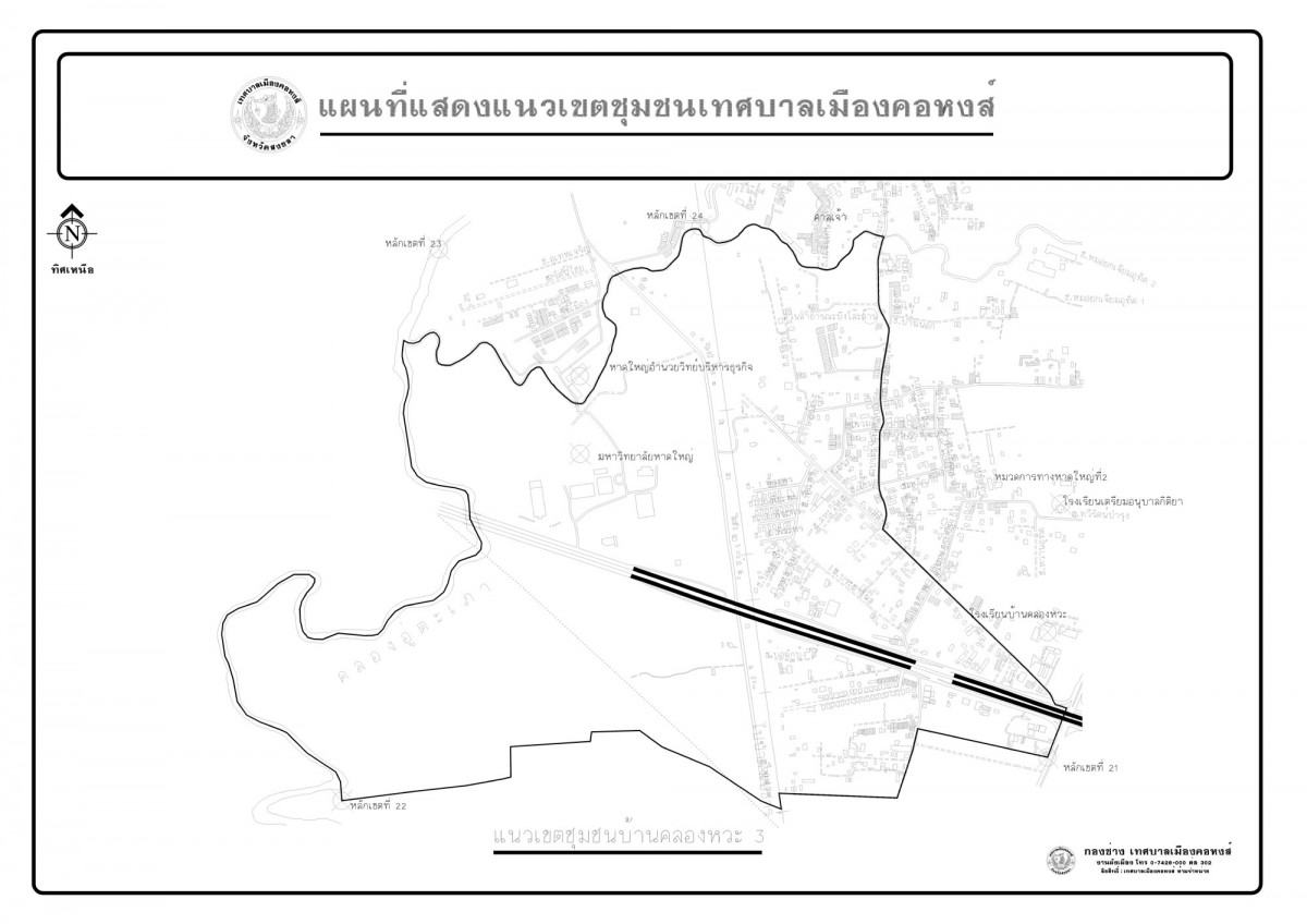 แผนที่แสดงแนวเขตชุมชนเทศบาลเมืองคอหงส์
