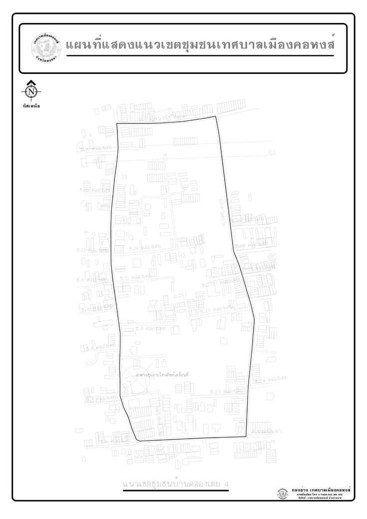 แผนที่แสดงแนวเขตชุมชนเทศบาลเมืองคอหงส์