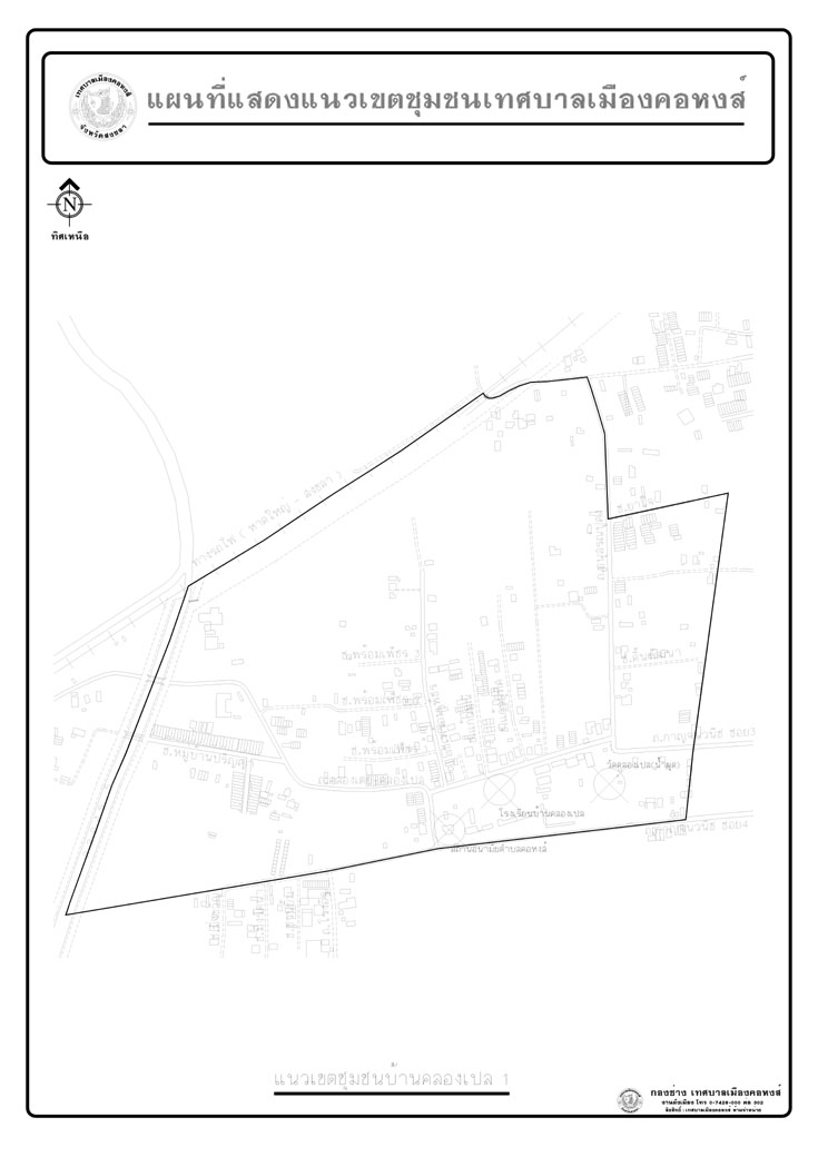 แผนที่แสดงแนวเขตชุมชนเทศบาลเมืองคอหงส์