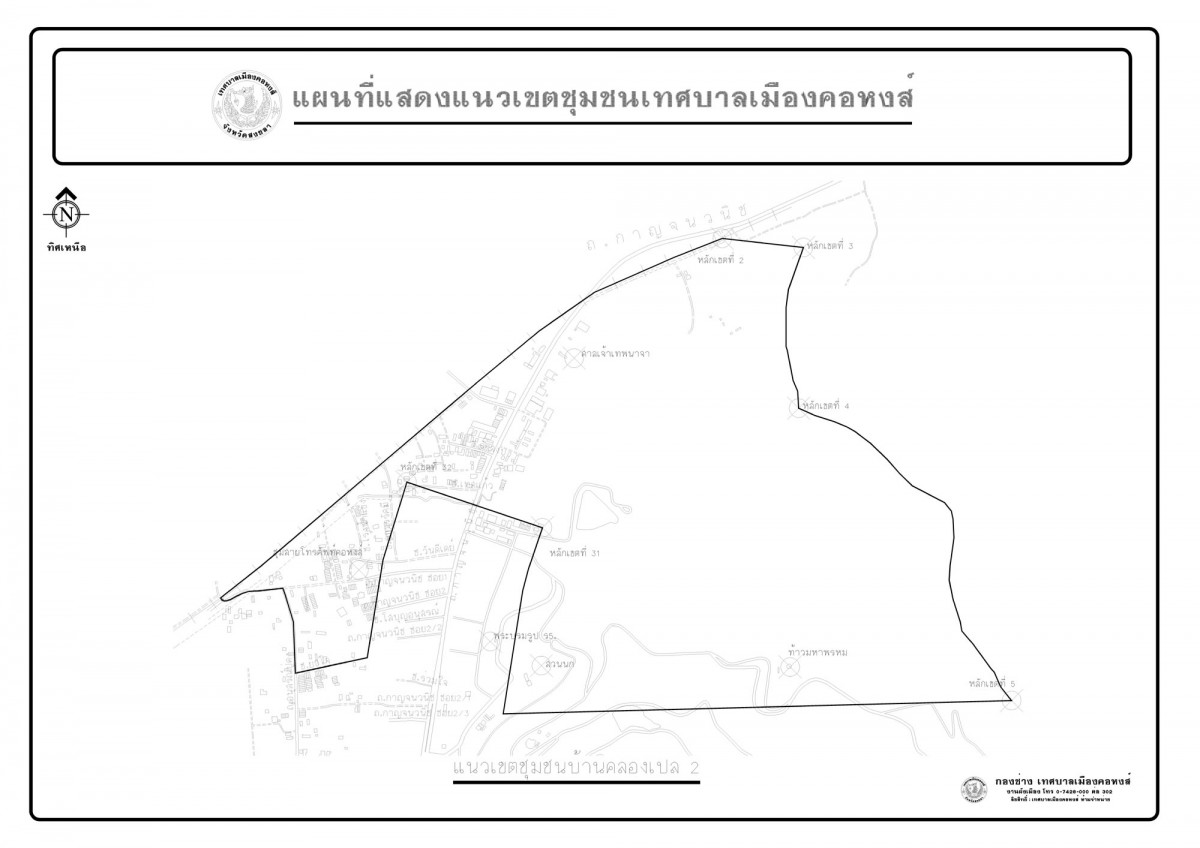 แผนที่แสดงแนวเขตชุมชนเทศบาลเมืองคอหงส์