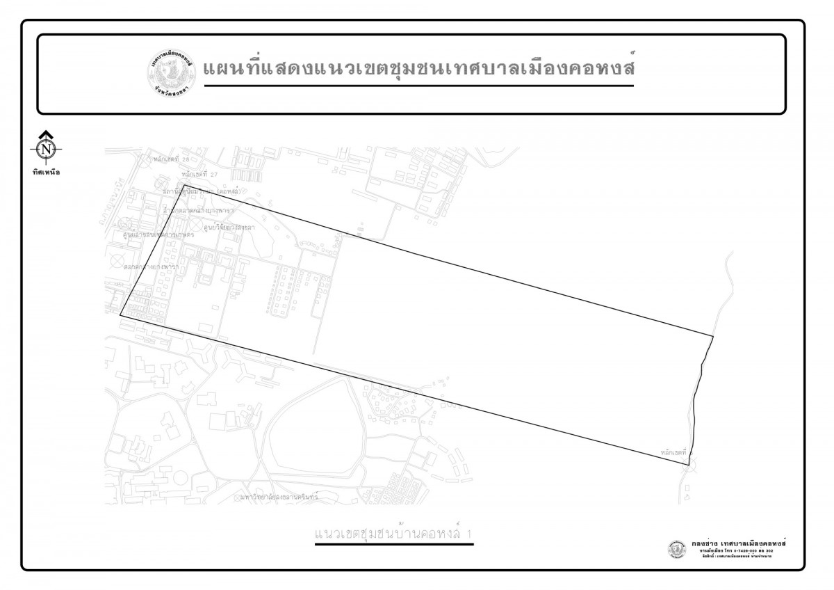 แผนที่แสดงแนวเขตชุมชนเทศบาลเมืองคอหงส์