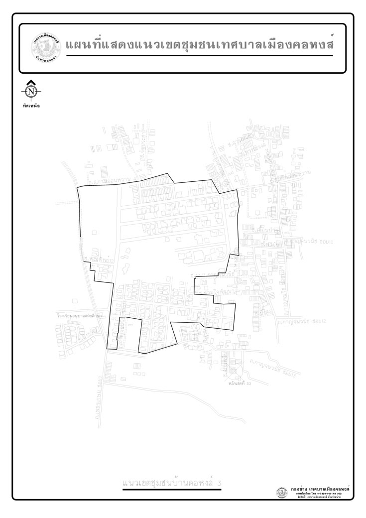 แผนที่แสดงแนวเขตชุมชนเทศบาลเมืองคอหงส์
