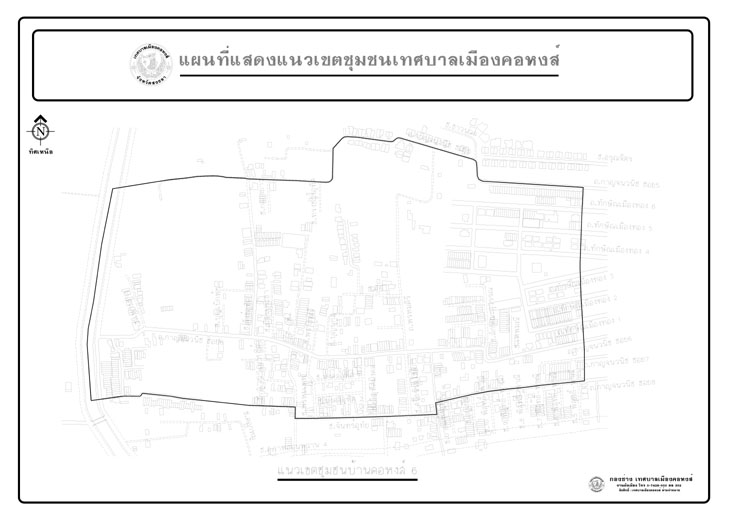 แผนที่แสดงแนวเขตชุมชนเทศบาลเมืองคอหงส์