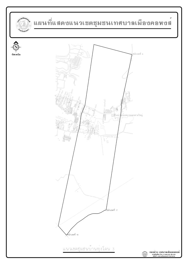 แผนที่แสดงแนวเขตชุมชนเทศบาลเมืองคอหงส์