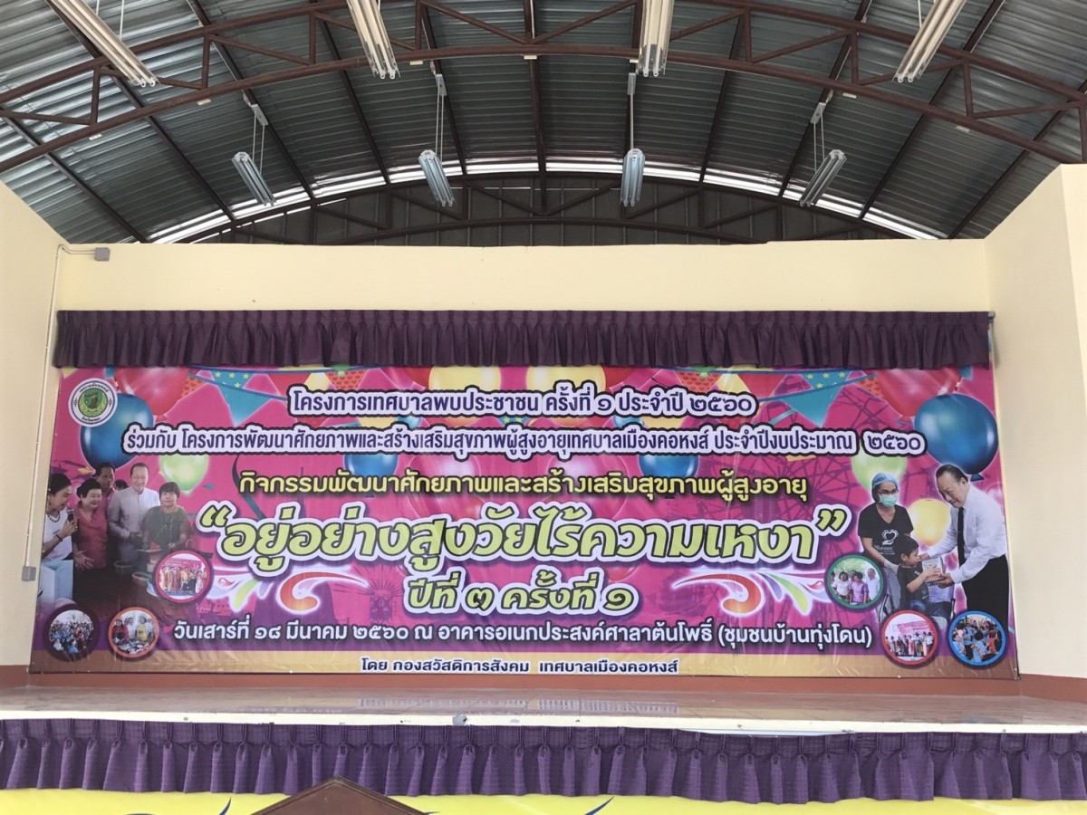 การจัดกิจกรรมพัฒนาศักยภาพและสร้างเสริมสุขภาพผู้สูงอายุเทศบาลเมืองคอหงส์ ในครั้งนี้ประกอบด้วยกิจกรรมทางศาสนา ได้แก่ การทำบุญถวายภัตตาหารเพลแด่พระสงฆ์ การฟังเทศน์ รับประทานอาหารร่วมกัน จับสลากของขวัญปีใหม่ รำวง ทำให้ผู้สูงอายุได้มีการพบปะสังสรรค์ การทำกิจกรรมทางศาสนาและนันทนาการร่วมกันในหมู่สมาชิกและเกิดการพัฒนาทางอารมณ์ให้มีความสุข ลดอาการซึมเศร้า  ผ่อนคลายความเครียด โดยกลุ่มเป้าหมายเป็นสมาชิกชมรมผู้สูงอายุเทศบาลเมืองคอหงส์ และผู้เกี่ยวข้อง จำนวน 400 คน ในวันเสาร์ที่ ๑8 มีนาคม 2560 ณ อาคารอเนกประสงค์ศาลาต้นโพธิ์ (ชุมชนบ้านทุ่งโดน)
