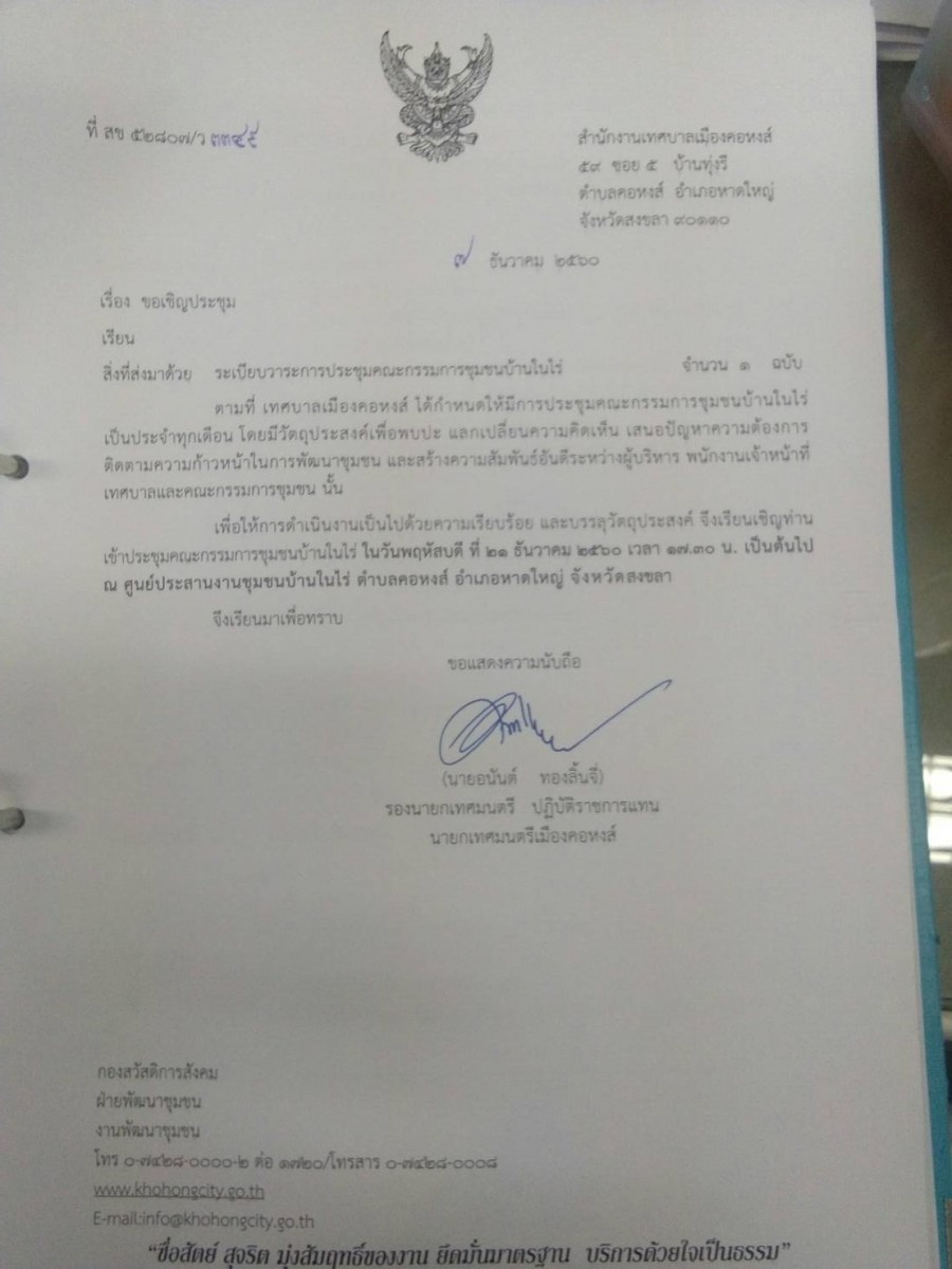 ขอเชิญประชุมคณะกรรมการชุมชนบ้านในไร่