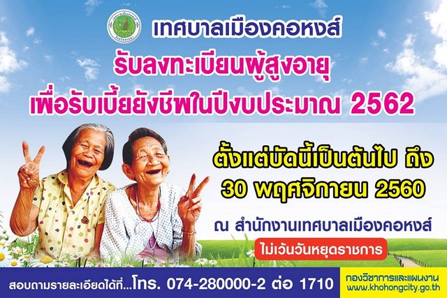 **เทศบาลเมืองคอหงส์เปิดรับลงทะเบียนผู้สูงอายุเพื่อรับเบี้ยยังชีพ ในปีงบประมาณ 2562**